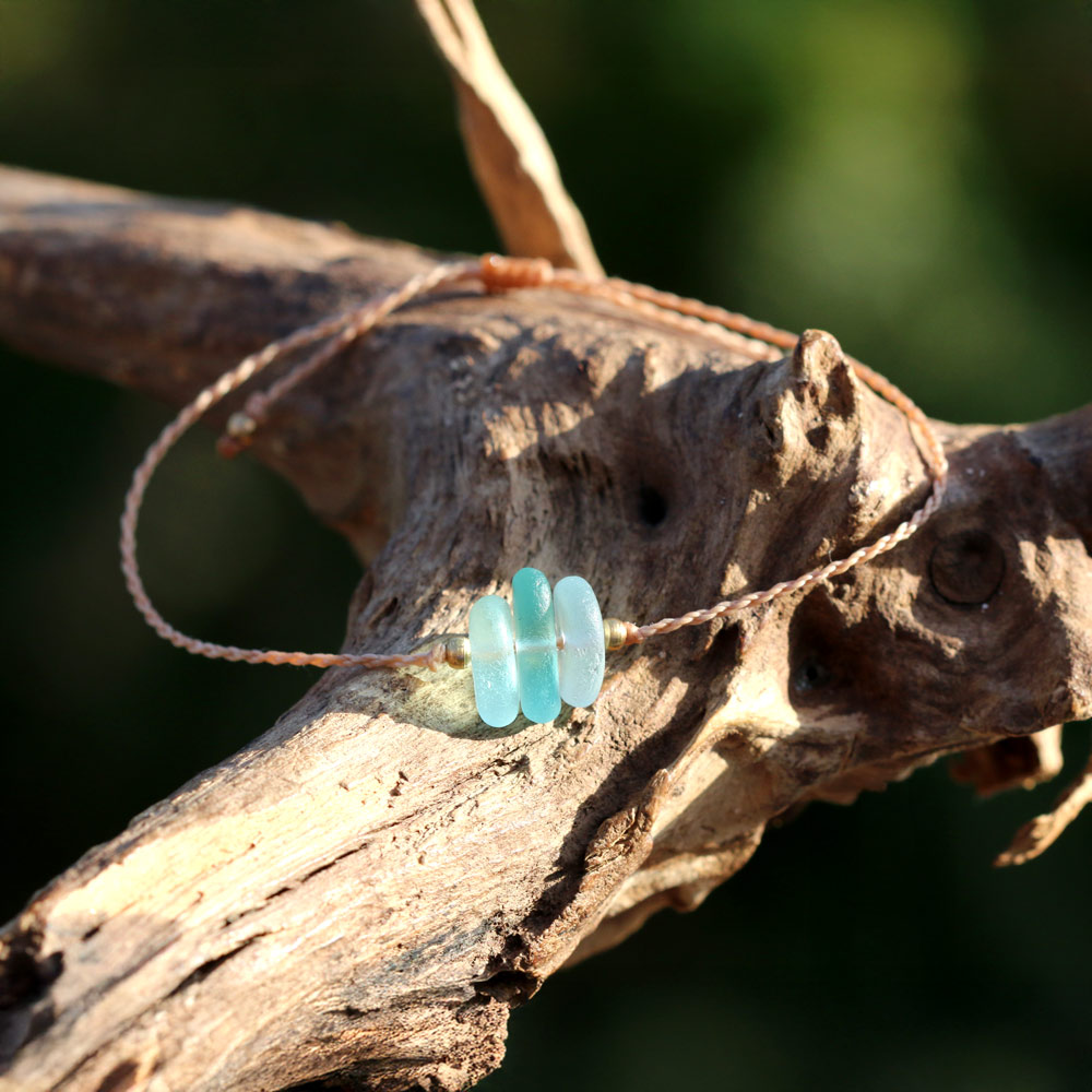 Vom Strand zum Armband… Sehr zartes Armband mit kleinen Strandscherben. Die Breite der Strandscherben beträgt insgesamt ca. 1 cm. Das Armband ist in der Größe verstellbar. Das handgedrehte Band hat eine Stärke von 1 mm (Polyester, Linhasita).
