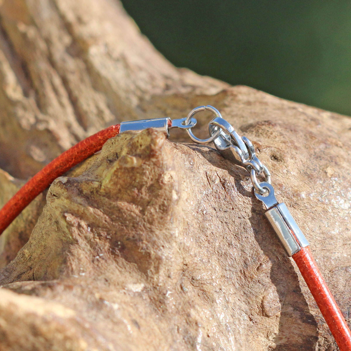 Vom Strand zum Anhänger… die Strandscherbe / Strandkeramik mit Motiv Welle stammt vom Strand Essaouiras, Marokko, und ist ca. 2,3 cm lang. Das Lederband in Braun mit Verschluss aus Edelstahl hat eine Länge von 44 cm und eine Stärke von 2 mm. Das Foto des Verschlusses zeigt ein Lederband in Orange mit identischem Verschluss. Sie erhalten das Lederband in Braun.