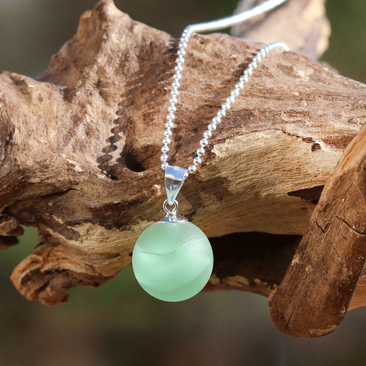 Vom Strand zum Anhänger….Seeglas – Murmel in Pastellgrün. Die Murmel hat einen Durchmesser von ca. 1,4 cm. Die Anhängerschlaufe ist aus 925 Sterling Silber, die Öse hat einen Durchmesser von 4 mm. Die Kugelkette, ebenfalls aus 925 Sterling Silber, hat eine Länge von 45 cm und eine Stärke von 1,5 mm.