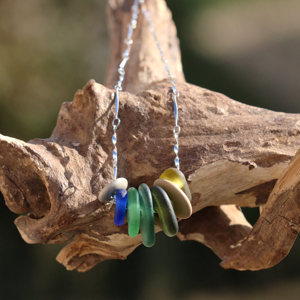Halsketten / Anhänger, Kieselsteine / Strandsteine, Seeglas / Meerglas