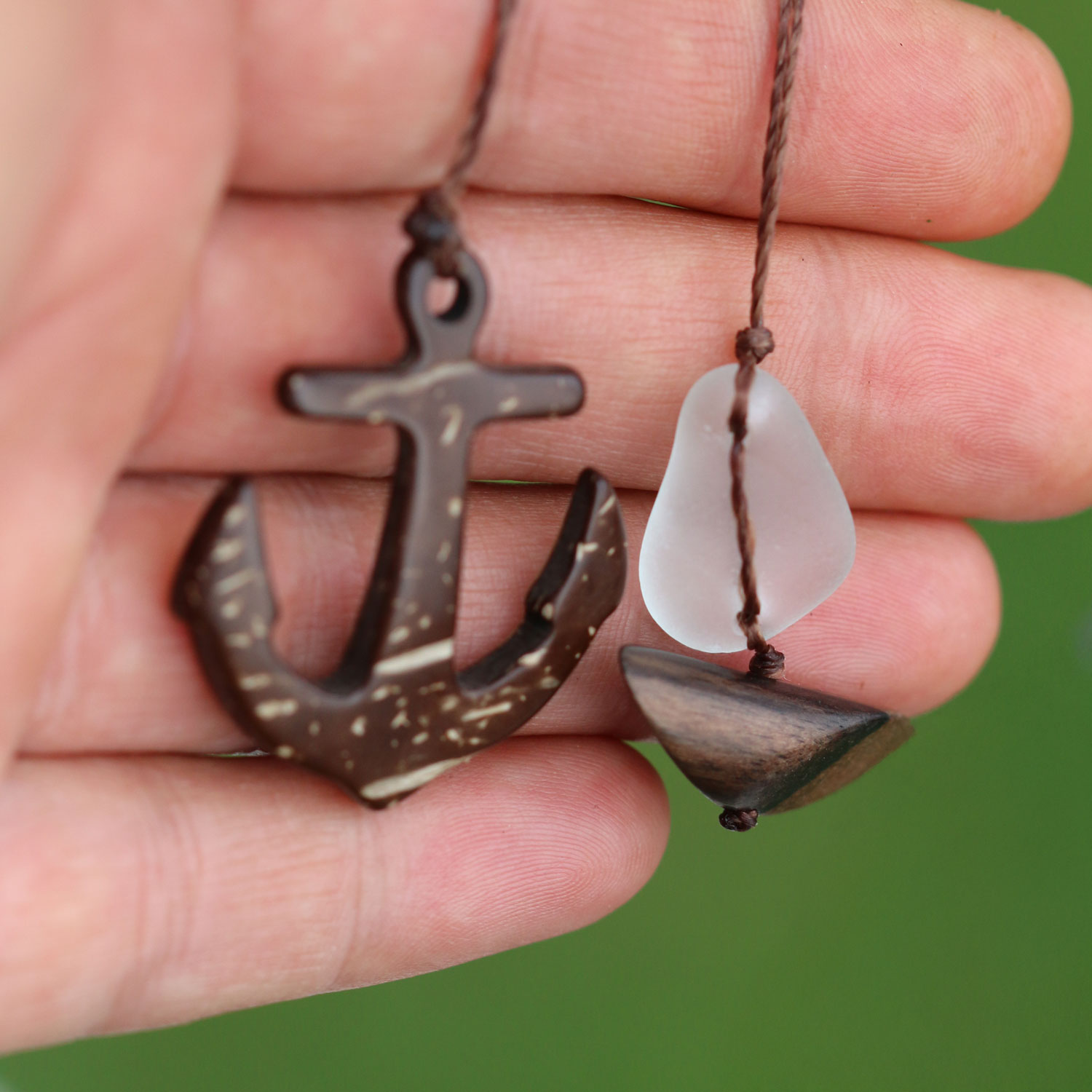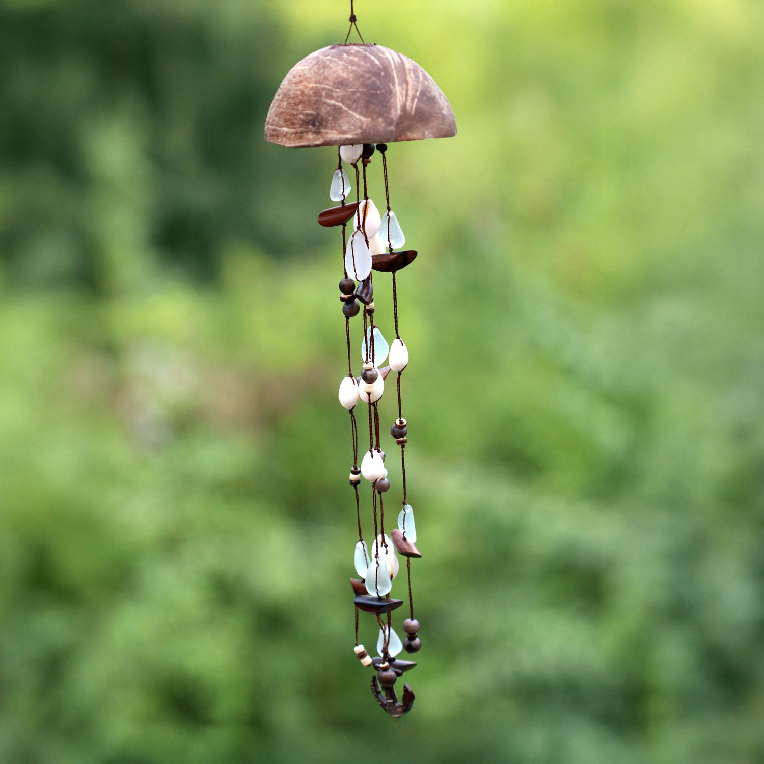 Manchmal ist Fernweh auch nur ein Synonym für Heimweh… Windspiel / Sonnenfänger mit Kokosnuss und kleinen weißen Schiffen aus Seeglas und Holz, Kaurimuscheln und Anker aus Kokosnuss. Die Perlen sind aus Tagua und Kokosnuss. Länge von Kokosnuss bis Anker sind ca. 37 cm. Es befinden sich 8 Schiffe am Windspiel. Das Seeglas ist echt vom Strand Italiens.
